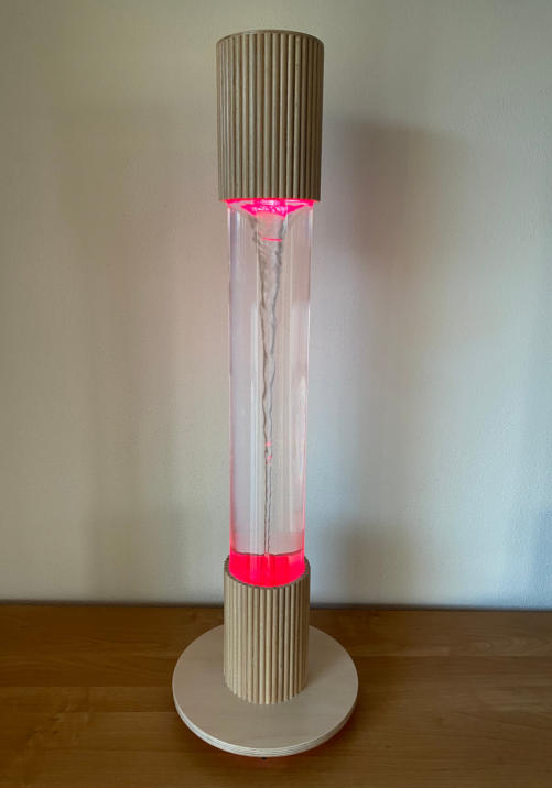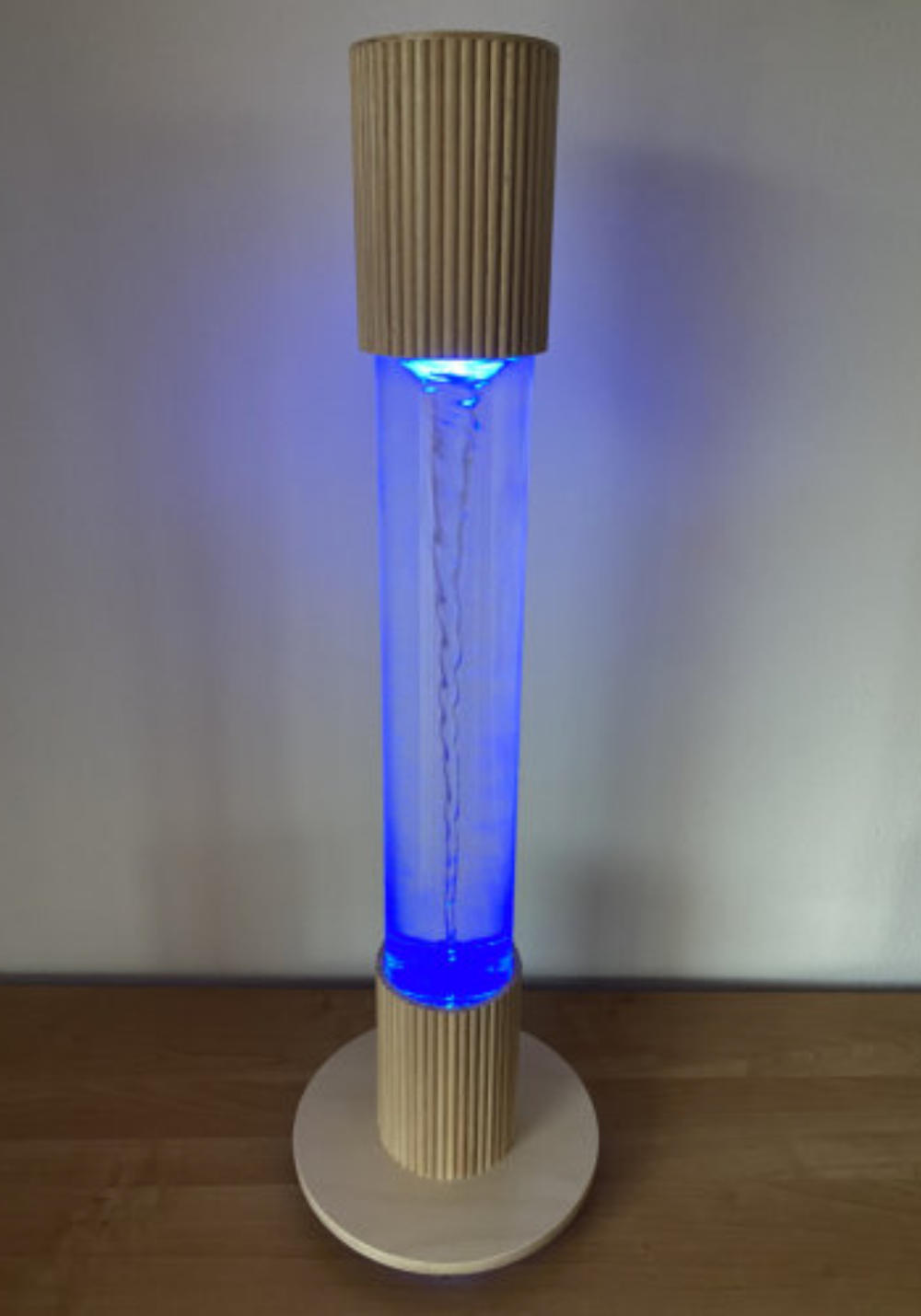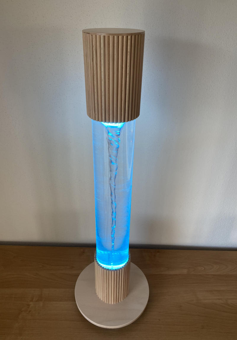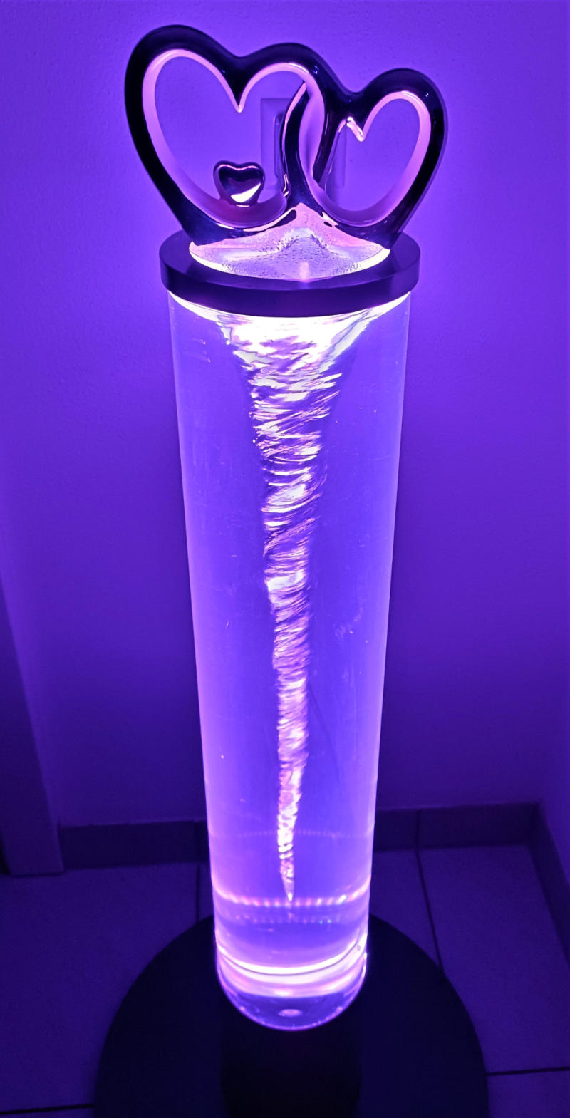 SosiehtdieSäuledanngeschlossenaus. DieFarbewechseltindiesemAusschnitt vonHellblauüberDunkelblauzuViolett, Magenta und dann Rot.DiedazugehörigeKappeschließtdie Säuleabundverhindertsodie Verdunstung und hält das Wasser sauber. NunhörenSiesogutwiegarnichtsmehr. DasleisePlätschernkommtvonden Videos mit offener Säule. GenießenSiedieBewegungdesWasser mitdenwundervollenFormationendes Wirbels,seineprächtigenFarbspieleund seinepositiveenergetischeWirkungauf Mensch, Tier, Pflanzen und Umfeld.